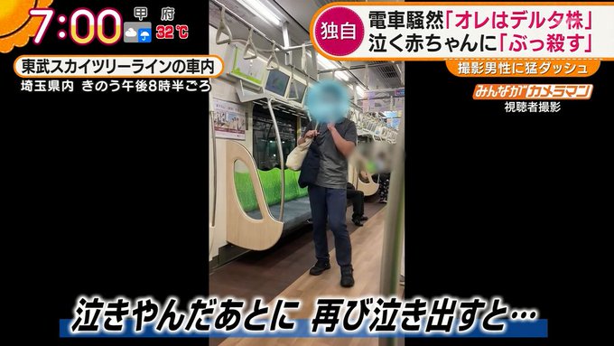 俺コロナ 東武スカイツリーラインの車内で 俺はデルタ株だ 泣く赤ちゃんに暴言の男 取り押さえられて逮捕 まとめダネ